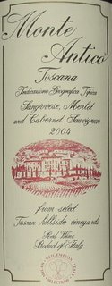 The 2004 Monte Antico is just a very easy-to-drink wine. For those who’s Italian Red wine experience starts with things like the Riunite at the market, here as an easy step up financially for a great companion to any Italian dish. You get the fruit of the Sangiovese with the Cab and Merlot making it a well-rounded, enjoyable glass with food. It’s very smooth and goes great with pasta, pizza, or meat.