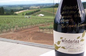In the photos: Top right is the view down into the valley atop one of the many hills. This was home of Bella Vida Winery. And at bottom left, is a the vinyard and a bottle of wine from Winderlea – a new operation with a very storied vineyard. One of the really cool things in the Valley as opposed to Napa or Sonoma is the owners or winemaker is often pouring the wine in the tasting room!