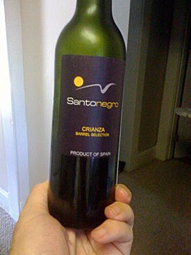 I bought a half bottle of SantoNegro Crianza “Barrel Selection” red wine at Mass Ave Wine Shop in Indianapolis today. How can you beat $4.99 for a couple nice glasses of wine?