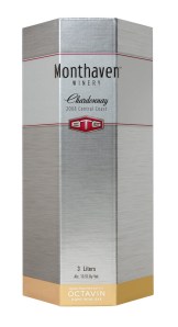 But just a week ago I received a 3 liter box of Monthaven 2008 Chardonnay as a trade sample. (That means free folks!) I popped it into the fridge when I got home today and drank a little with a pork chop this evening.