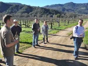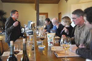 (In photo above right, I joined a group of wine writers in January touring Mendocino County, California. Here we are tasting the wines of Jeriko Vineyards. Copyright photo, Tom Liden 2011)