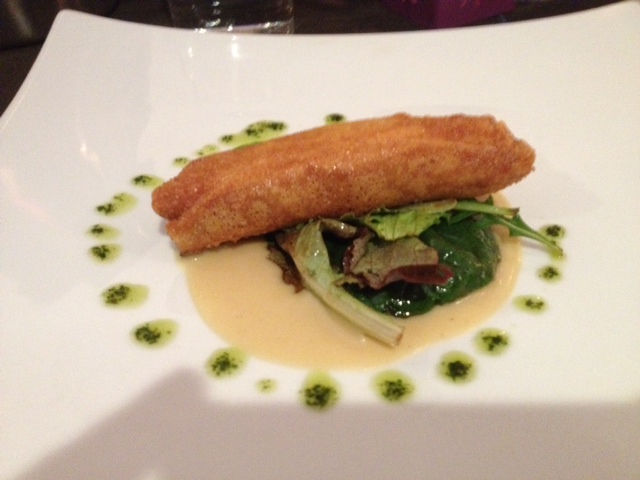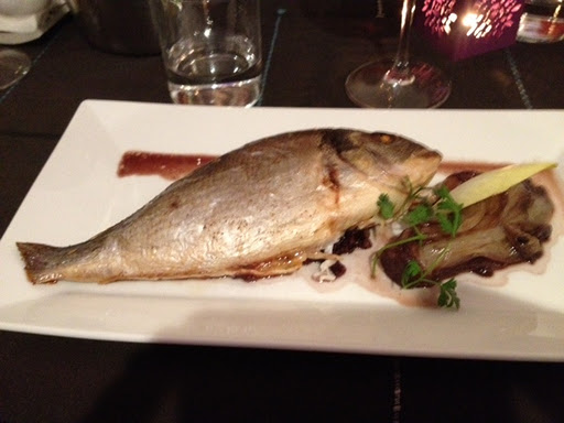 Dinner was every bit as interesting as the wines. We started with what most of us thought was some deviled crab in crispy shells – much like an egg roll. It was on some greens with a bit of sauce.Our choice of entree was simple fish or veal. I opted for the fish and it was great. The skin was crispy the white fish was really delicious and the bones were pretty easy to deal with. I didn’t eat the head – just couldn’t to it.
