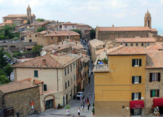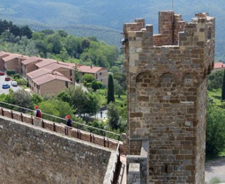 A little farther to the south you enter the Montalcino region, centered around the lovely hilltop town of that name crowned by an ancient castle. The grapes there are also largely Sangiovese. Montalcino is the region for Sangiovese’s best representation in a bottle, Brunello wines.