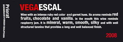 Vega Escal 2008 Priorat, $20, 14.5 alcohol, Highly Recommended