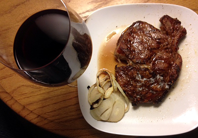 With rare warm weather, near 60 degrees, it seemed like a good night to grill a nice Angus ribeye. So with steak getting friendly with the sea salt and fresh ground pepper, it was time to rummage through the wine rack.