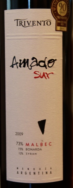 Trivento Amado Sur 2010 Malbec, Trade Sample, widely available around $11, Highly Recommended