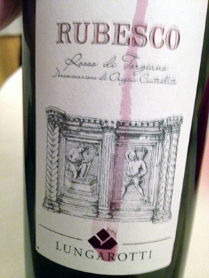 The Rubesco was a new experience and I found it  delightful for a value-priced wine. It is Sangiovese (70%) and Canaiolo (30%) which has been designated a proprietary blend for Lungarotti. If you find it and like Italian food and wine, buy it.