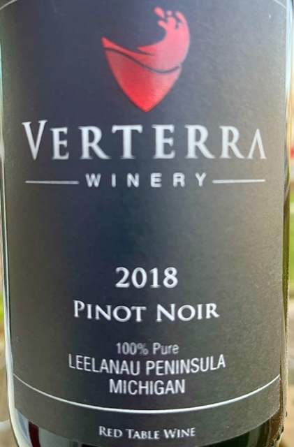 Paul Hamelin, Verterra owner and a leader for northern Michigan wine has a 2018 Pinot that reminds me more of California than Oregon or Burgundy. I brought home a bottle and opened it tonight, April 9. It was varietally correct and certainly not thin more like a body of a good Sonoma Valley Pinot Noir.
