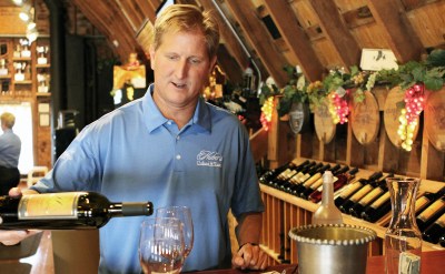 | Ted Huber pours wine for the both of us to taste in the Huber tasting room. |